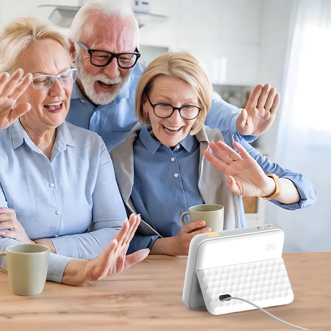myFirst Frame Clario is the family hub designed to connect generations, keeping your memories, calls, and schedule on track every day.