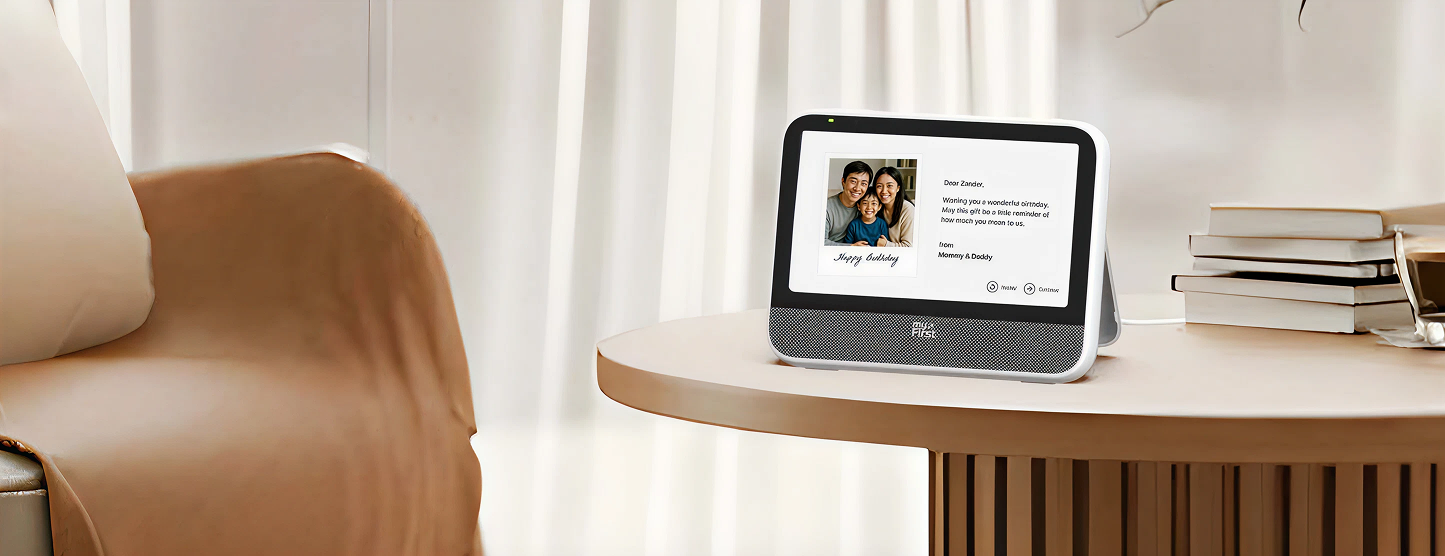 The first time the recipient powers on the Clario, that special greeting appears on screen—a beautiful, personalized surprise before they’ve even finished unboxing!